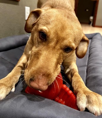 This is a great dog toy for the heavy chewers. My dog always destroys toys for “super chewers” but this has held up and barely damaged! Best quality for chew toy. No small pieces have broken off and it is dog approved! I received this product through the Hey Bullseye program.