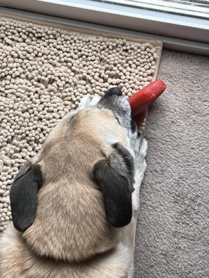 I have a Bernese Mountain Dog who is a powerful chewer. We are always looking for toys that accomplish two things- 1. Last for longer than 4 hours 2. Don't leave little plastic pieces everywhere that are either consumed or stepped on. The BARK Red Gnawbster Under the Seams Dog Animal Toy lasted for more than 4 hours which was nice. I will say the toy does a decent job of not leaving debris, but it creates some sharp edges after use. It also has a unique shape, something to think about.