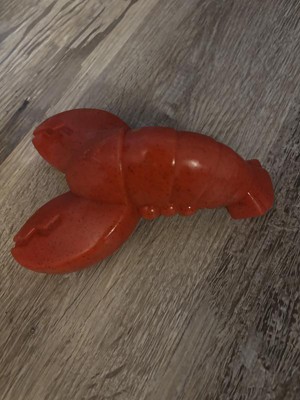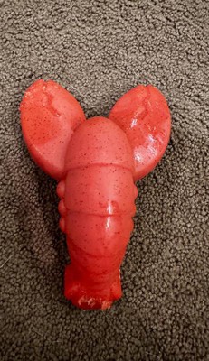 This is a durable chew toy for large dogs. It is a tiny bit big for my smaller German shepherd. It is durable nylon so perfect for big chewing dogs. Its a little heavy in weight. I like that it is bacon scented for doggies. Its a cute red lobster toy. So far my dog likes it.