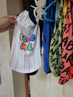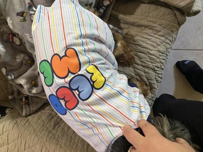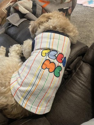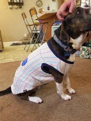 The shirt overall is okay. The material is on the thinner side, which is nice to keep your pup cool. The problem I have is the quality of the lettering. One wash and it’s peeling. It’s a dog tee though so I’m bothered but I do think the lettering could have been done differently. Overall, the colors are fun and it’s cute for a bigger pup.