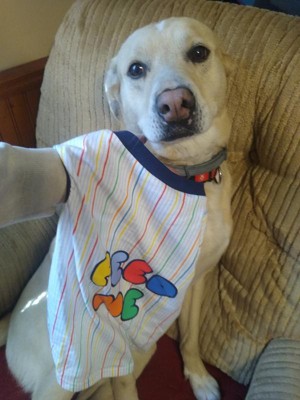 Not great doggie shirt. Seems to run big, stretched very easily over her neck causing her to get tripped up, and the quality of the material seems OK at best. The design is fine, but that's about the best it has going for it.