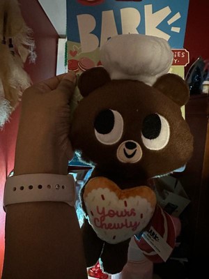[This review was collected as part of a promotion.] Kylo loves!!! Comes with a squeeker. Such a cute little plush! Soft and squishy. This is his new comfort toy lol! Love the bear design- cute for valentines day