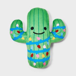 Bring festive fun to your furry companion's toy collection with the Basic Cactus Dog Plush Toy from Boots & Barkley™. This dog toy is designed in the shape of a cactus with an embroidered face wrapped with colorful string lights. Showcasing a soft plush construction, this cactus dog toy is great for cuddling and fetching.
