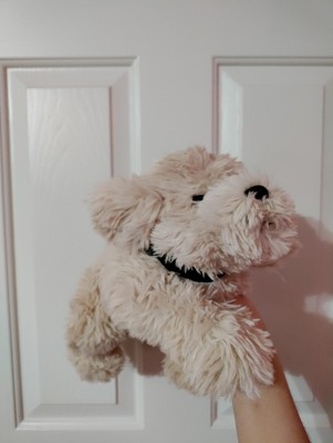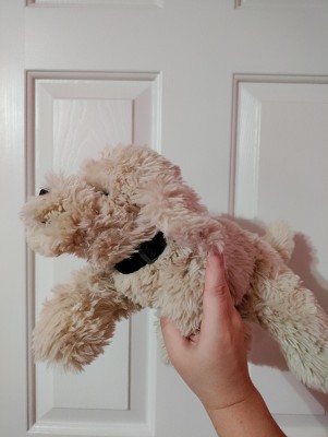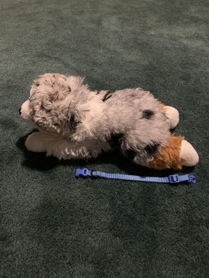 I tried this on my recent, close to life size 15 inch FAO Schwarz Doodle Dog ESSA(Emotional Support Stuffed Animal) and it fits perfectly. The adjustable part of the collar makes it easy for the smaller range in dog plushies to give them a stylish, simple and affordable dog item for everyday use. I am looking forward to coming back to my nearest Target(s) for more colors of this same Dog Collar!