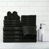 Refresh your linen closet with the durable yet incredibly soft and absorbent Basic Solid 18-piece bath set. Crafted using quality yarns these linens are easy care machine washable and ideal for everyday use. The Basic Solid 18-piece bath sets are 100% cotton and are available in several colors. Each set is Oeko-Tex Standard 100 certified and comes with (4) 27 in. by 52 in. bath towels, (4) 16 in. by 26 in. hand towels, and (10) 12 in. by 12 in. washcloths. Complete your collection with a coordinating stripe bath towel or mix and match your colors to create a different atmosphere and color pallet in your bathroom. Whichever look you prefer, the Basic Solid 18-piece bath set is sure to please.