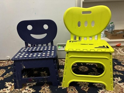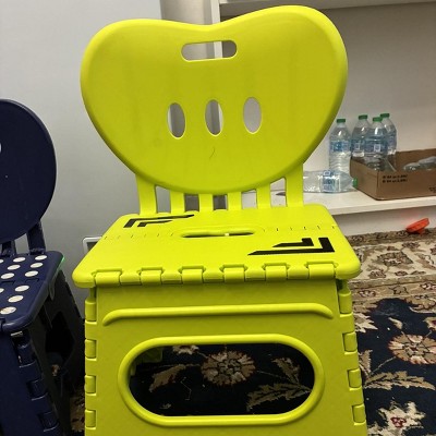 Exactly what I was looking for! My son had a smaller one (navy blue in picture. Brand: Acstep, and height is 9 inches) for over 2 years, and now my daughter (who’s almost two) is always fighting over the stool chair with him. So I had to get another one. They use it to sit at the coffee table in our living room. It’s quite difficult to find a foldable stool which also has the back support (hence stool “chair”). Not many vendors sell it. You can find regular stools (without the backing) anywhere but this type is hard to come across. Thankfully I came across this product and this is even better than what I was looking for because this stool is 10.5 inches tall so it’s better for my son who’s much taller now. So i bought the green one for him. I will definitely buy the pink one when my daughter outgrows her navy blue one if this product is still around! This stool chair also has a lock to lock it in sitting position so that’s another plus! Very happy with my purchase.
