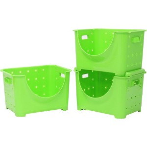Basicwise Stackable Plastic Storage Container, Set of 3 Green