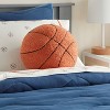 Give your kid's sports-themed room a fun update with the Sports Boucle Kids' Decorative Throw Pillow from Pillowfort™. This novelty throw pillow is designed in the shape of a basketball for a whimsical, sporty look. Made of 100% recycled polyester fabric with 100% polyester filling, this throw pillow features a sewn-seam closure for a neat finish.