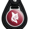 - DURABLE LEATHER KEYCHAIN: Give your keys some street cred with our leather keychain with durable resin-topped emblem. Pocket-sized for convenience, this keychain easily stows away in purse, pocketbook, or evening bag. The easy-to-spot image makes it perfect for keeping track of that special set of keys.