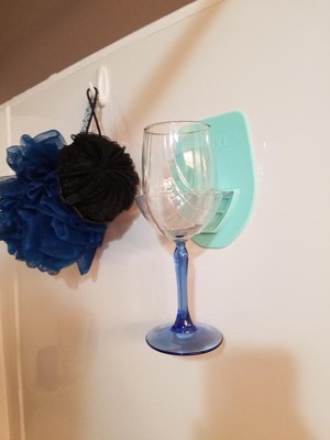 I love this idea, but would have to buy a wine glass specifically to use with this holder since you shouldn't use it with an actual glass. It does install really easily, and holds really well. I've used it to hold wash cloths, and tested out how well it would hold up by putting one of my jars of body scrub on it. Overall works great.
