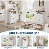 - Charming Farmhouse Style: This freestanding farmhouse storage cabinet doubles as a classic buffet cabinet, featuring a paneled finish, rustic metal hardware, and a thick wood-grain top—adding timeless charm and cozy cottage-style elegance to any room. It’s perfect for family homes that appreciate a warm farmhouse look.