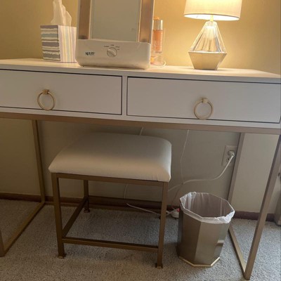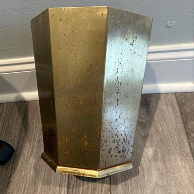 This wastebasket offers a stylish design that complements various bathroom decors, particularly with its appealing gold finish. Guests appreciate its solid construction and weight, making it a durable choice for any space. However, some have experienced issues with rust and wear over time, especially in damp environments. Overall, it serves as a functional and attractive addition to both bathrooms and bedrooms, though care should be taken regarding its placement.