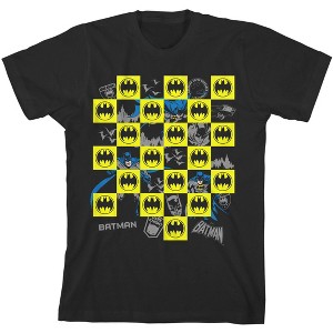 Batman Bat Signal Pattern Youth Black Short Sleeve Crew Neck Tee - 1 of 4