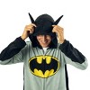 Become the Dark Knight with this men's Batman union suit. Designed to resemble Batman's iconic superhero outfit, it features a utility belt graphic, Batman's logo, and a hood with 3D bat ears. Made from ultra-soft micro polar fleece, this suit combines comfort with heroic style. Perfect for lounging or cosplay, it also includes a cape to complete the look. Machine washable for easy care, this union suit is a must-have for any Batman fan.