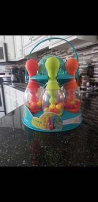 [This review was collected as part of a promotion.] I love this little bowling set for my 2 year old. Even though she may not have all the fine motor skills to roll the ball straight, she loves playing with the pins and ball. She has as much fun setting the pins up, as she does trying to knock them down. We've used them in our house during rainy weekends and outside with neighbors. I love that the whole set clips together and has a handle - honestly so smart. This is why I am obsessed with B. Toys - they think of everything.