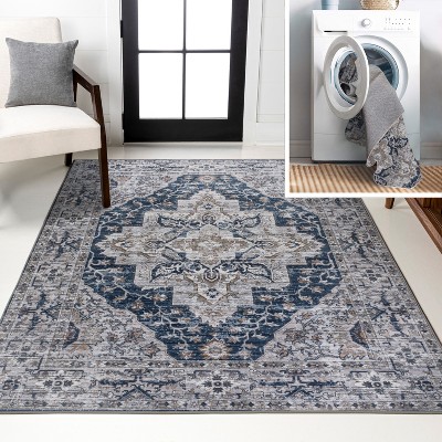 Our distressed medallion rug adds a bohemian element to any home. Decked out with non-slip ridged backing, this rug is durable and machine-washable. This rustic chenille rug is the perfect addition to any living room or bedroom.