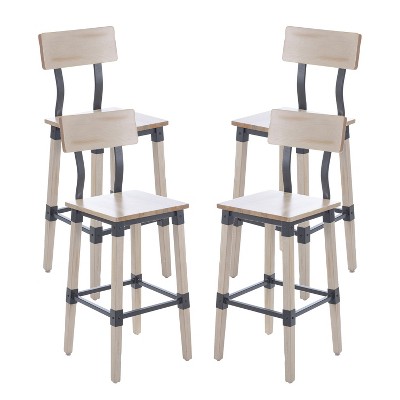 Baylyn Barstools White - Adore Decor: Modern Low Back, Wood Legs, Spot Clean, 265lb Capacity