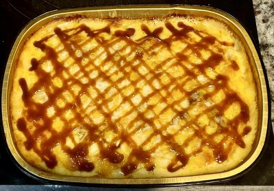 I was honestly not expecting much from this premade mac and cheese, but it ended up being pretty great! Had a good amount of meat and wasn’t dry at all. I heated the tray at 370° for 30 minutes and topped it with Kinder’s Gold BBQ Sauce. Would definitely purchase again!