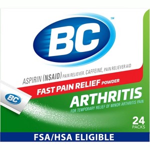 BC Aspirin Fast Pain Relief Arthritis Powder is formulated for individuals dealing with arthritis discomfort and joint pain. Each packet contains a fast-dissolving aspirin formula designed to deliver quick relief where you need it most. Simply take the powder directly or mix with water for rapid results. With 24 individual packets, this product is portable and convenient for use at home, work, or while traveling. Trusted for generations, BC Powder offers an easy-to-use solution for arthritis pain relief, helping you get back to your day with greater comfort and mobility.