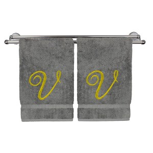 Product Description: This ultimate, luxurious hand towel set of two, Made of 100% pure high-quality cotton, Gray color Embroidered with Gold script "hand writing" initial, durable for a long time using, machine washable and does not lose its performance after several wash cycle or store, its present a good gift for your life partner or any occasion.