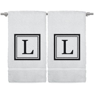 BC BARE COTTON Monogrammed Hand Towel, 100% Turkish Cotton - Set of 2 - White - Black Square