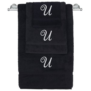 BC BARE COTTON Monogrammed Towel Set, Personalized Gift, Set of 3 - Black - White Script