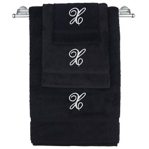 BC BARE COTTON Monogrammed Towel Set, Personalized Gift, Set of 3 - Black - White Script