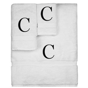 BC BARE COTTON Monogrammed Towel Set, Personalized Gift, Set of 3 - White - Black Block