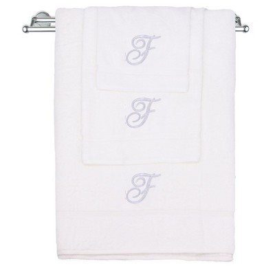 BC BARE COTTON Monogrammed Towel Set, Personalized Gift, Set of 3 - White - Silver Script