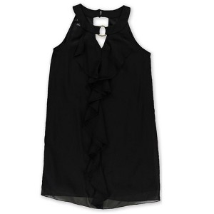 - BE FABULOUS: Cascading ruffles with a charming metallic detail at the neckline add a playful yet refined flair to this sleeveless shift dress.