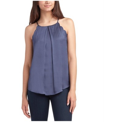 BCX Womens Ruffled Pullover Blouse, denim, X-Small