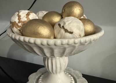 I absolutely love the look of these bowls. The ivory color is the perfect warm neutral and has the beaded rim for a high-end feel. I do have some concerns about the long-term longevity. As you see in the picture where it is assembled does not seem like it would hold up well over time. it is gorgeous for the price, but I wouldn’t recommend for a high traffic household, where things may get knocked around. Also note - not for food either.