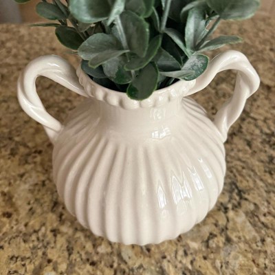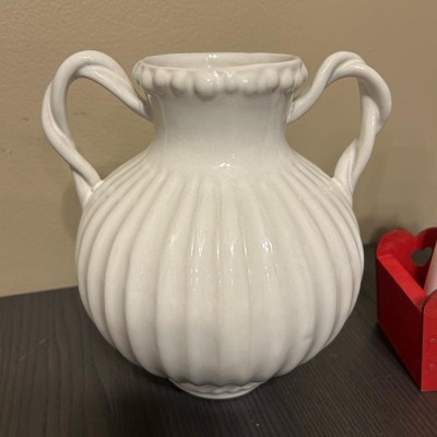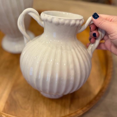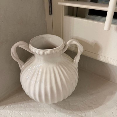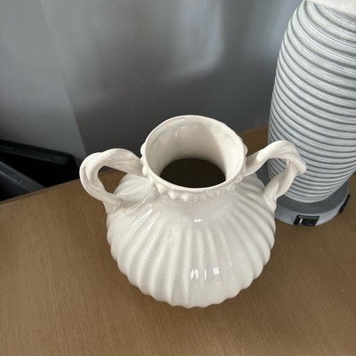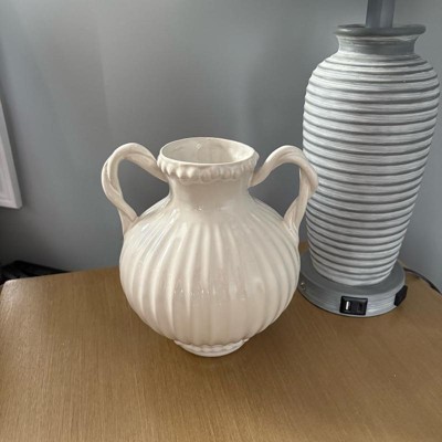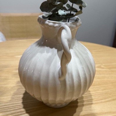 [This review was collected as part of a promotion.] This bead it's ceramic ivory handle vase by threshold is beautiful. This gives me vibes from the 1900s and I'm loving it. The detail around the top of the vase with the beads and the lines along the vase is so in depth it's very beautiful and charming. I also love the way the handles look like they are twisted.