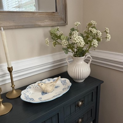 Add pristine style to your home with these White Beaded Ceramics from Threshold™. This versatile collection features a bird, taper candle holder, planter, decorative bowl, handled vase, tray and tall vase. Made of ceramic, each piece features a soft ivory hue with ribbed and beaded accents to bring subtle texture to your decor. Plus, the vases have a watertight construction for use with fresh flowers. Mix and match the pieces throughout your home to create a cohesive, polished look on shelves, tables and countertops.