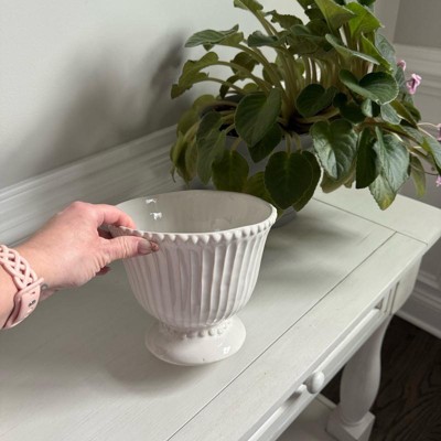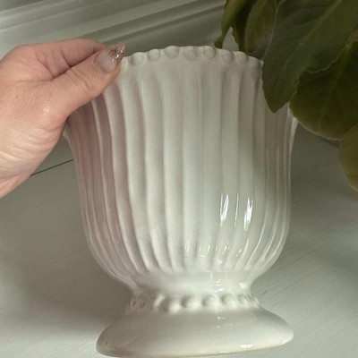 [This review was collected as part of a promotion.] I love this ceramic planter! It would be lovely with any faux or real plant in it but it is also beautiful stand alone! I think it really elevated my wall shelf decor. I love the simply but intricate design of the beads around the top and then the stripes down the sides. It’s simple but elegant. The color is a very beautiful shade of white. A must buy!