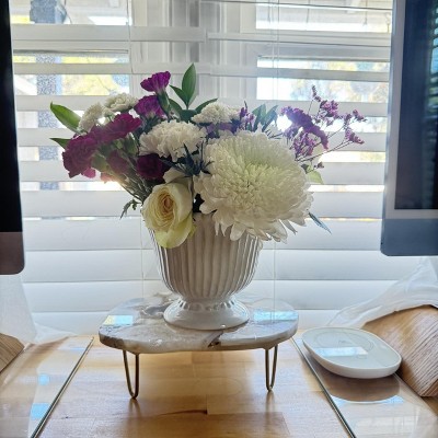 A pretty neat ceramic planter. I have used it alone as a decor. And now decided to add fresh cut flowers. 💐 Is holding pretty well. No complains. Glad I purchased it during a Target run, usually stop by the decor section and knew I had to invest in it. Note: there’s a drain hold with a stopper. Real ceramic, durable, & cute.