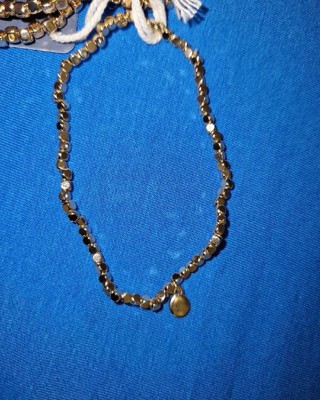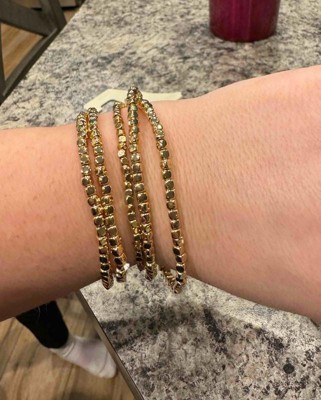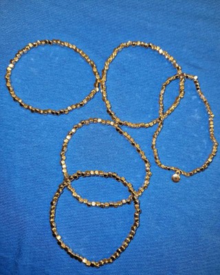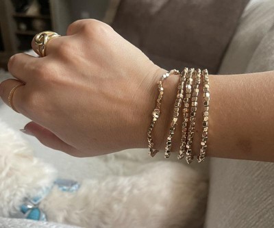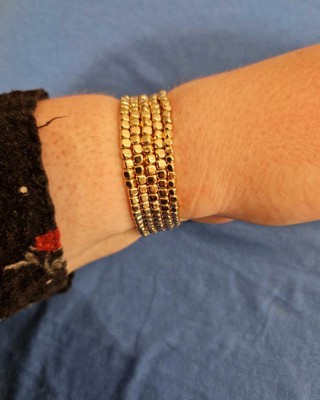 Amp up your wardrobe for any occasion with this 5-Piece Beaded Stretch Bracelet Set from Universal Thread™. This five-piece bracelet set features shiny metallic square beads on elastic strings so they're easy to get on and off while offering comfortable all-day wear. You can wear one beaded bracelet on its own, or stack them together for a bold pop of style.