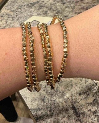 [This review was collected as part of a promotion.] I love a good pair of stackable bracelets and these are perfect. They are stretchy and they go on easily. They are quite roomy and will easily fit me with additional bracelets as well. I love the gold tone and how it will mix and match easily with my Apple Watch if I wanted to pair them together for a stackable style . I received an incentive to write this review.