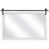 - Farmhouse Design: This accent wall mirror showcases a sleek, modern finish on its rectangular frame, complemented by ornamental brackets inspired by barn doors for a charming farmhouse touch.