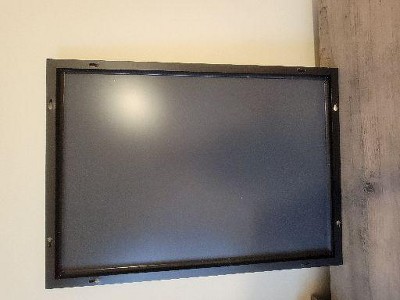 Not what I expected the mirror looks blue I tried looking for a flim to possibly pull off but i dont want to ruin it.I put a white pillow and you can see the blue tint in it. I was a bit upset that it only came with three screws....two can do the job but four would have been better support. Might send it back.