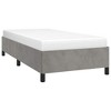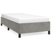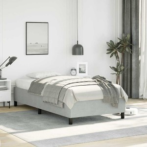 This Twin XL bed frame's the perfect mix of style and practicality, making it a fab addition to any modern bedroom. Upholstered in light grey soft velvet, it brightens up your space and gives you a comfy spot to unwind after a long day. Supportive slatted base designed to spread weight evenly, keeping things stable and comfy all night long.Light grey velvet upholstery brings a touch of class, fitting into different bedroom styles while keeping a warm feel.Solid build with engineered wood means it's built to last, making it a reliable option for everyday use.Space-saving design works best for one person, making it ideal for dorms, guest rooms, or minimalist digs.Free-standing floor setup lets you move things around easily to suit your layout. Color: Light Grey Shape: RectangularMaterial: Fabric VelvetFinish: Matte Indoor/Outdoor: Indoor OnlyCover Included: NoRoom: BedroomMaximum Number of People: 1Mounting Included: NoDimensions: 16.0 x 31.9 x 5.4 in (W x L x H)Leg Height: 5.4 inWeight: 52.69 lbsSwings: NoDelivery Contains: Bed frameAssembly Required: YesRecommended Number of People for Assembly: 2