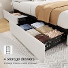Bed Frame with 4 Storage Drawers and Headboard, Linen Upholstered Platform Bed Frame with Wooden Slats Support, Diamond Stitched Button Tufted, No Box Spring Needed