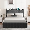 Bed Frame with Storage - 4 Underbed Drawers & Wingback Headboard, Built-in Charging Station Ports, Diamond Tufted Upholstered Platform