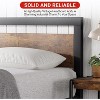 - 【Industrial Chic Aesthetic】Elevate your bedroom's decor with the stylish fusion of a rustic wooden-grain headboard and footboard against a sleek black metal frame.