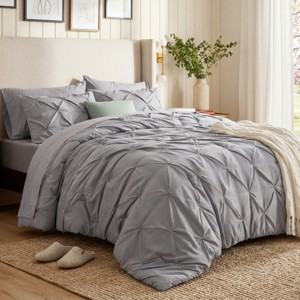 Bedsure Bed in a Bag Comforter Set with Sheets, Solid Diamond Pintuck All-Season Bedding, GentleSoft™ Luxury Pinch Pleat Bedding Set, Gift for Family - 1 of 4