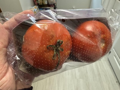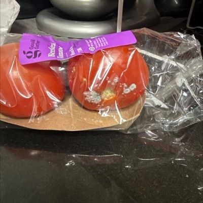 I have tried these multiple times and EVERY time I open the package and one or both are moldy on the bottom. Don't waste your money on these, pick out your own tomatoes that don't come in wasteful packaging, as well as guaranteed moldy produce.