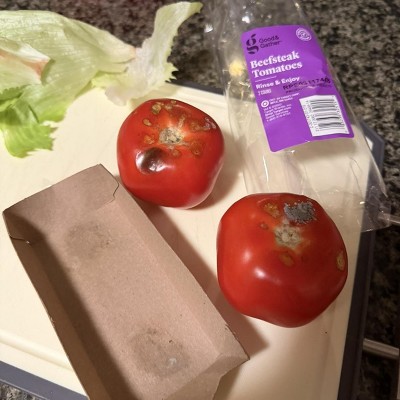 We bought tomatoes from target to use for dinner that night and opened the container to realize the side on the bottom was all moldy.