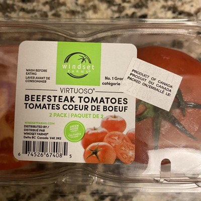 What I got is definitely NOT beefsteak tomatoes. They are the smallest tomatoes ever. They only take up room in about a third of the packaging. It’s almost comical. Looks like tomatoes off the vine which are about a third the size of a beefsteak tomato. Way too expensive for what you get.