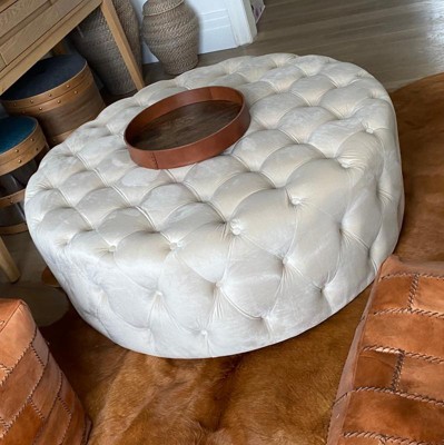 Beekman Place Velvet Button Tufted Round Cocktail Ottoman - Inspire Q