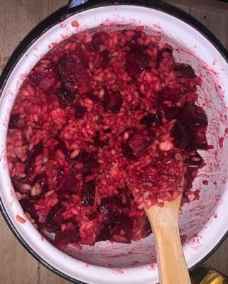 [This review was collected as part of a promotion.] Beets are so beautiful in color and these fully displayed the rich gem tone even once cooked in the dish. I liked that they sold them with all the stems and leaves removed. I found these to be very fresh, they were easy to peel and chop. The price is reasonable as well. I received an incentive to write this review.